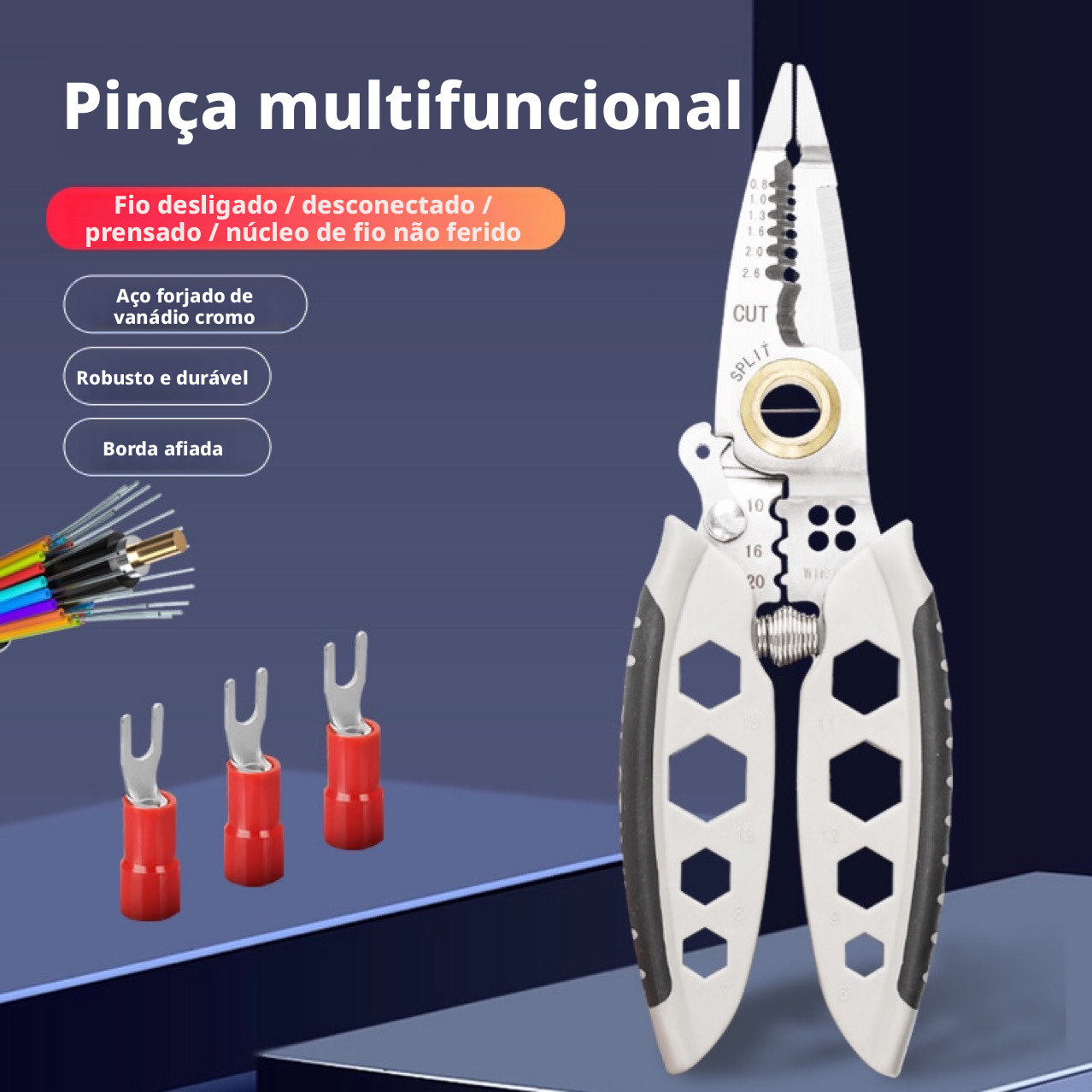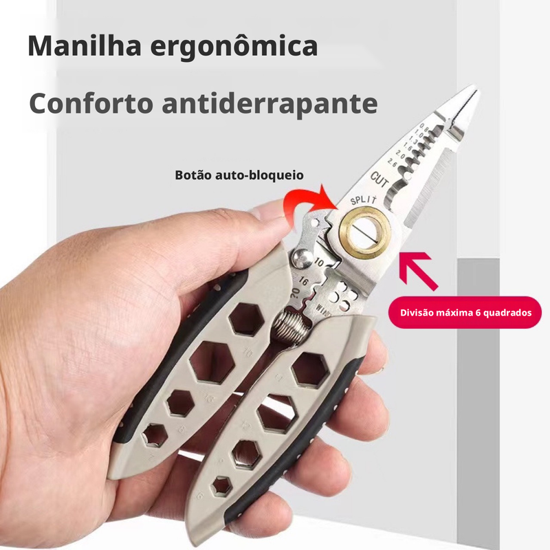 Alicate Desencapador Multifuncional 7" - Ferramenta de Eletricista para Corte, Aperto, Enrolamento e Torção de Parafusos