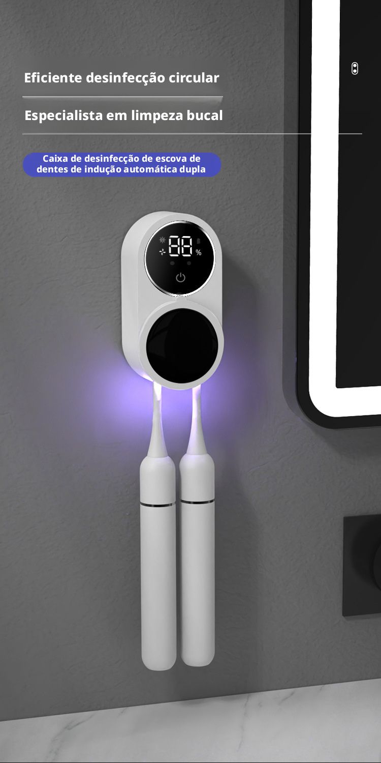 Caixa Desinfetante para Escova de Dentes com Abertura e Fechamento por Sensor Inteligente, Esterilizador UV para Escova de Dentes com Função de Desinfecção e Secagem, Removível e Fixação em Parede Sem Marcas