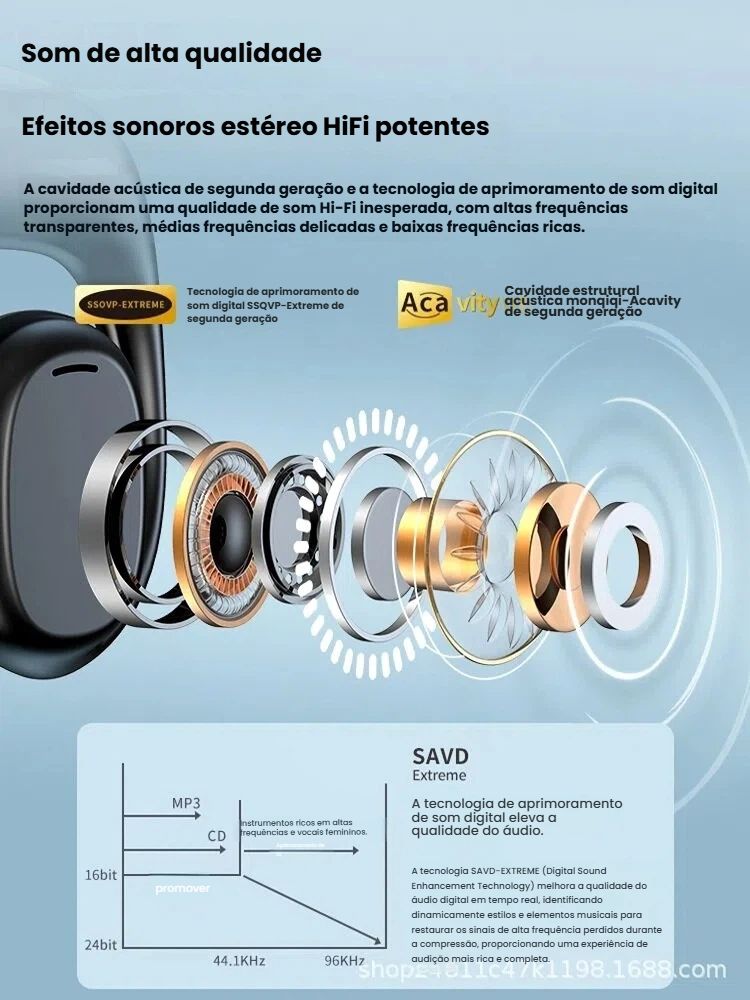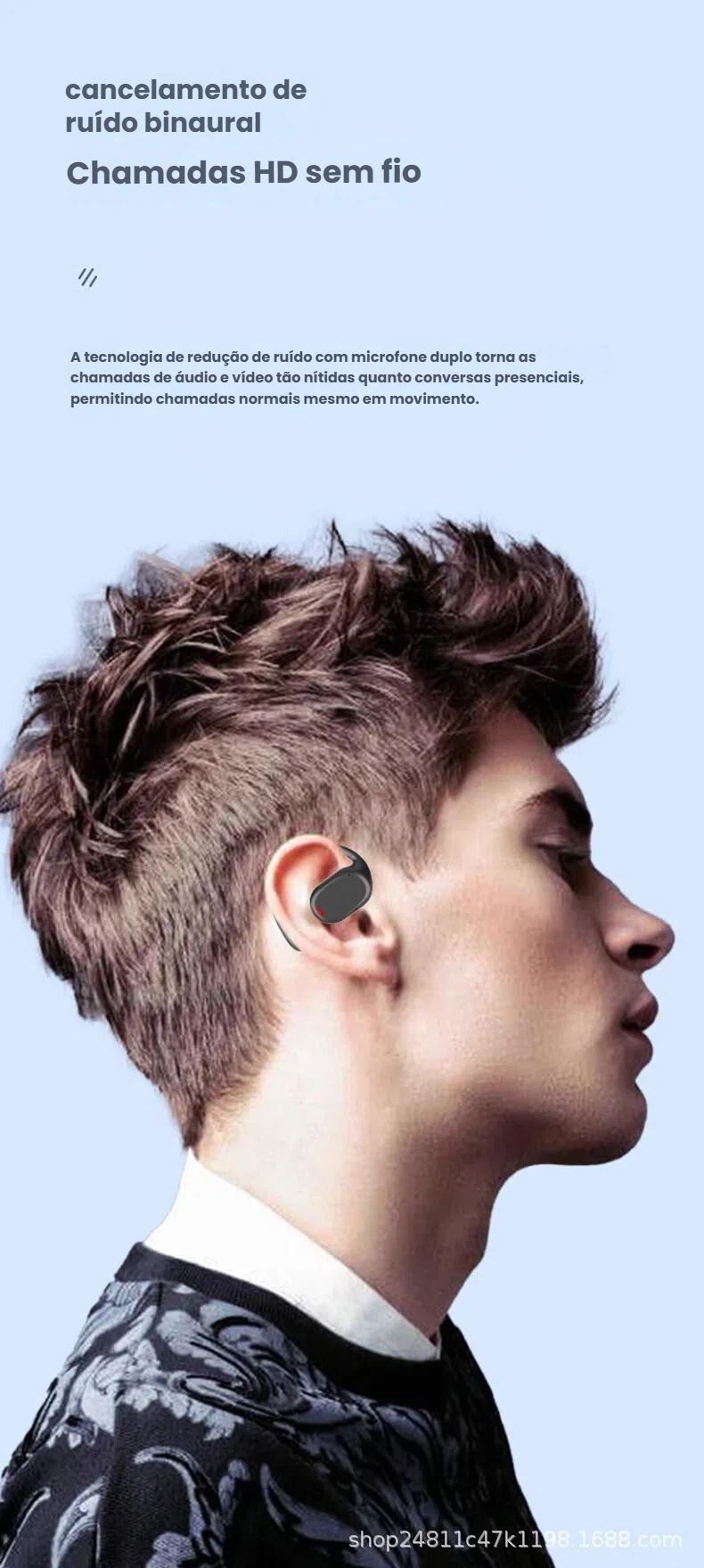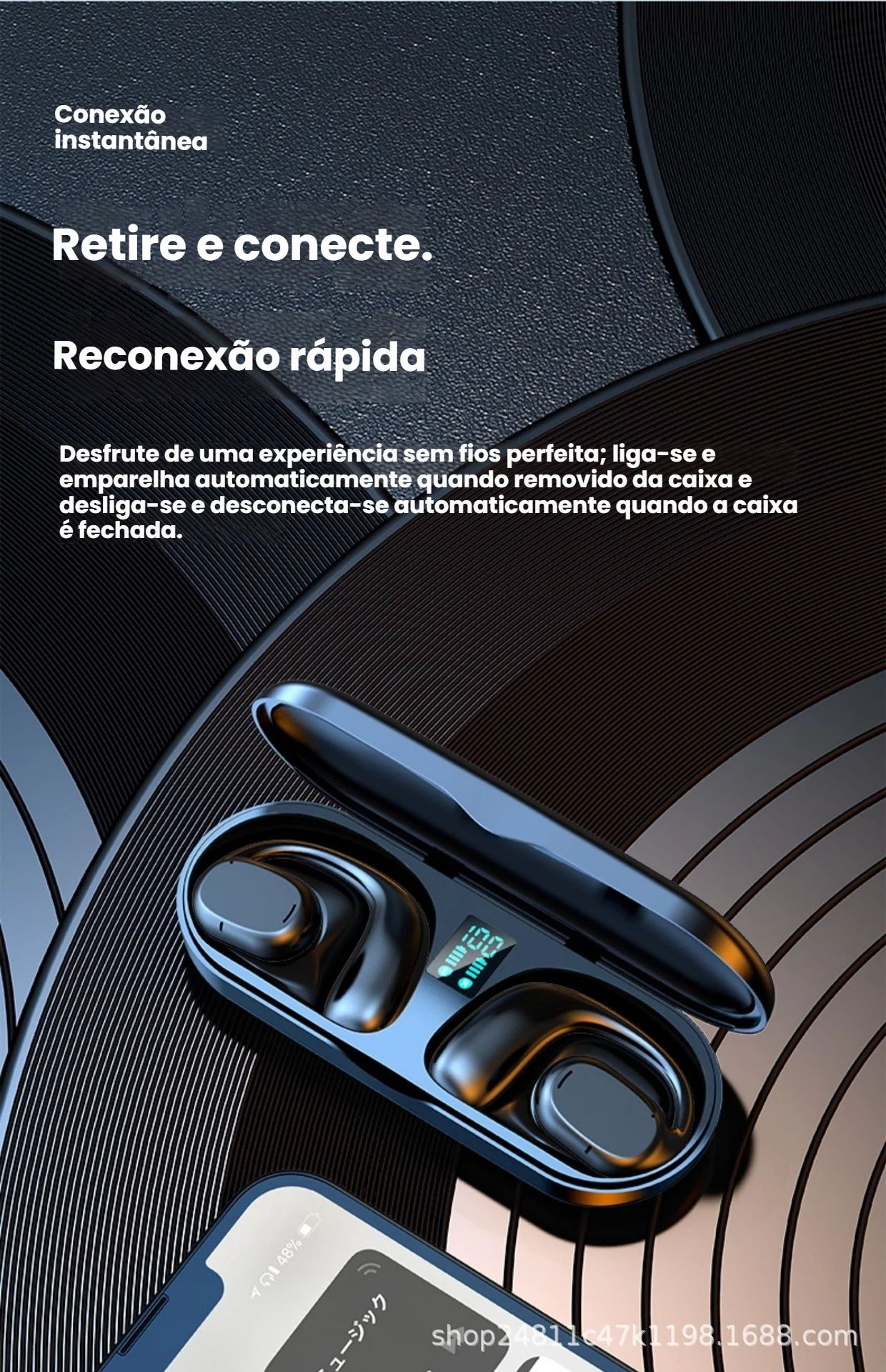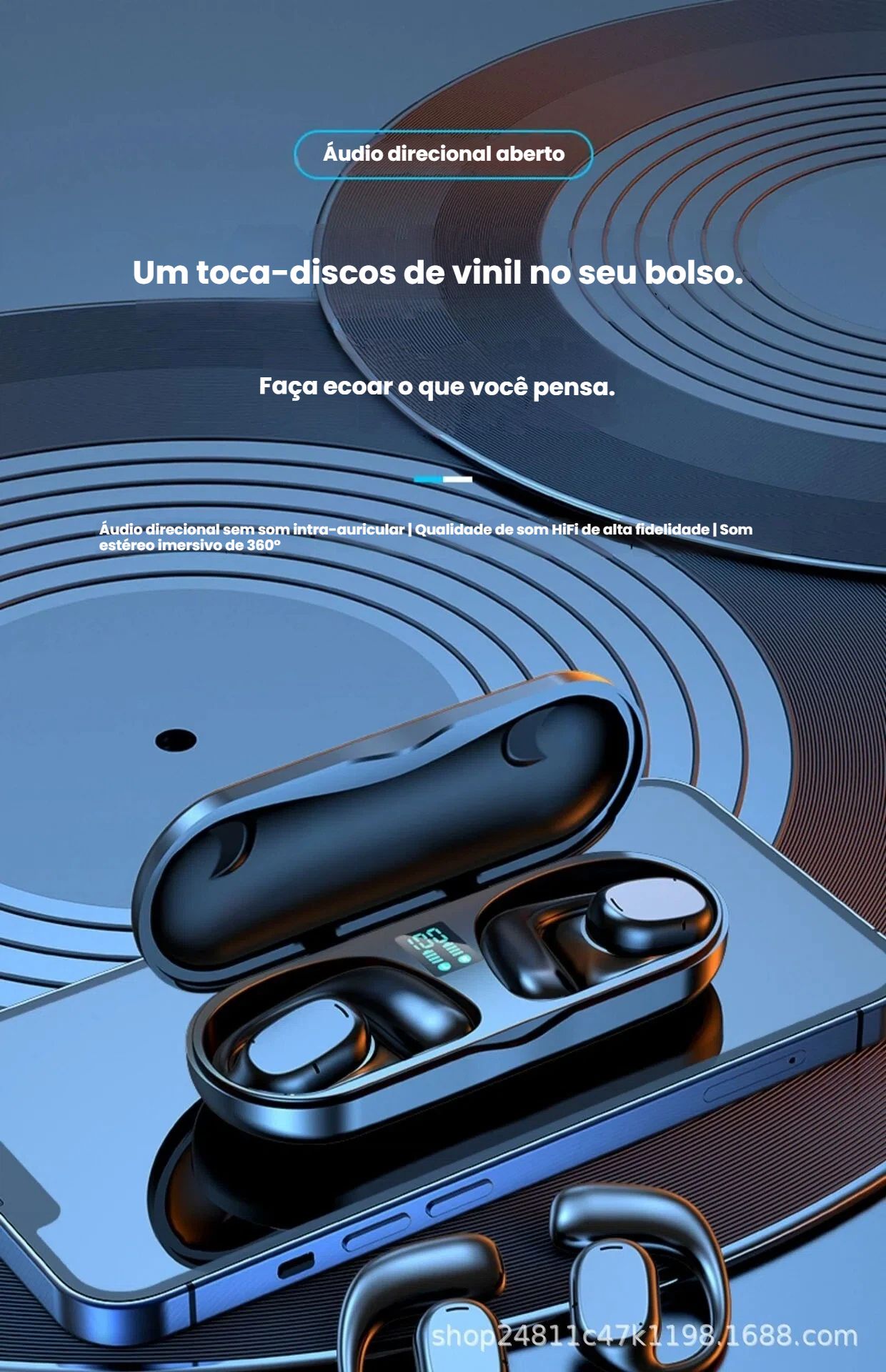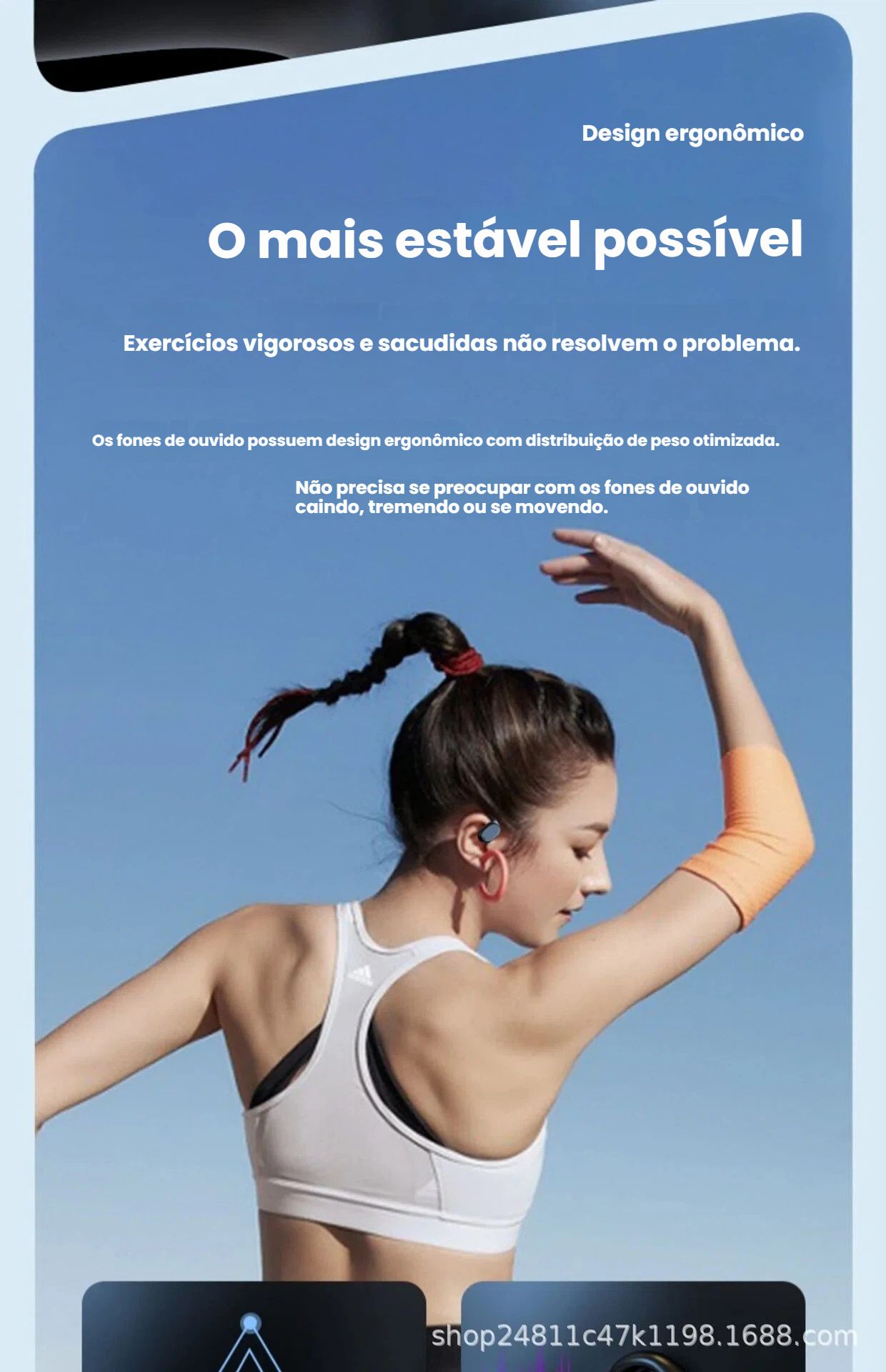 Fone de Condução Óssea Bluetooth - Exibição Digital, Alta Bateria, Esportivo Pendurado