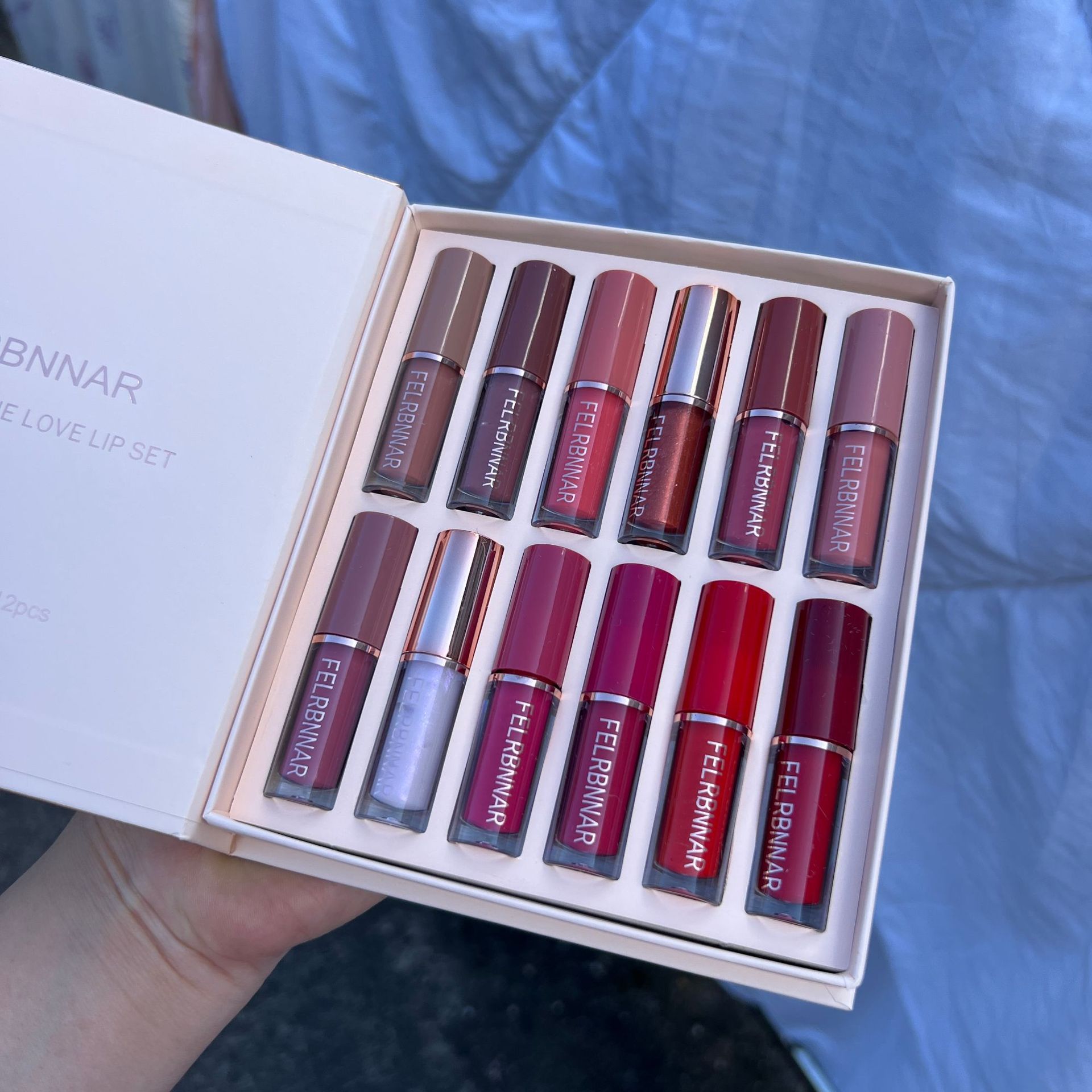 Kit de Gloss Labial 12 Unidades com Brilho Perolado Fino, Batom Longa Duração, À Prova d'Água, Não Pegajoso e Mate