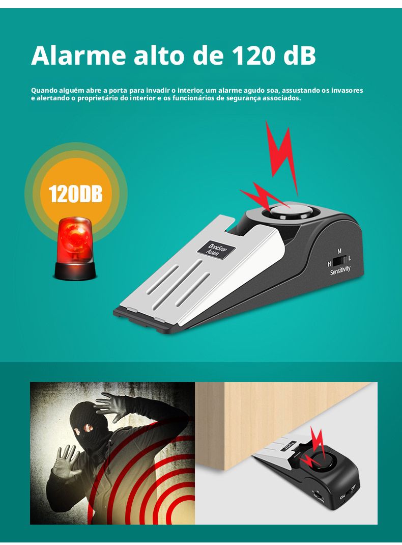 Protetor de Porta com Alarme Anti-Roubo, Bloqueador de Porta para Mulheres em Hotéis e Uso Doméstico, Amortecedor de Porta Anti-Colisão, Calço de Porta com Alarme de Alto Volume