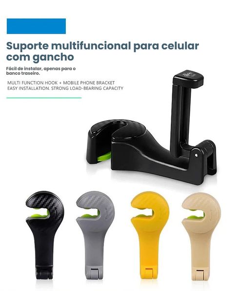 Suporte de Celular para Encosto do Banco, Gancho Multifuncional Ocultável para Veículo